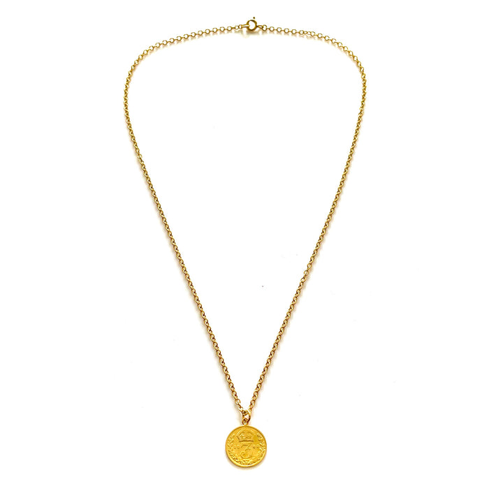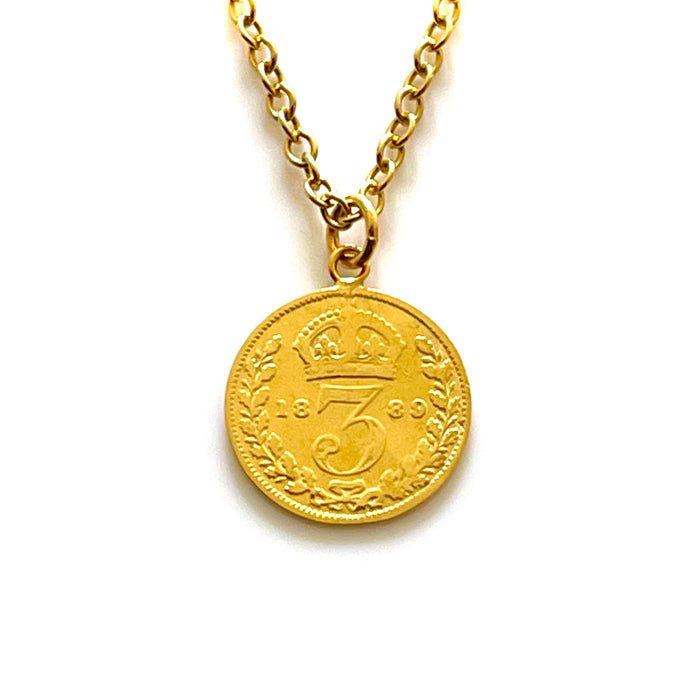 18ct Gold Plated Sterling Silver 1889 Victorian Three Pence Coin Pendant Necklace by Roberts & Co