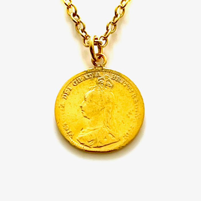 Each coin used in our pendants is a unique collector's item, carrying the marks and inclusions that tell its own story of circulation and use in Victorian England. Please note that the images provided serve as a reference for the coin's grade, and each piece may have slight differences in appearance due to its individual history.