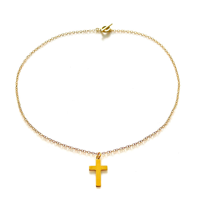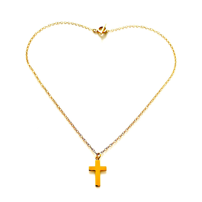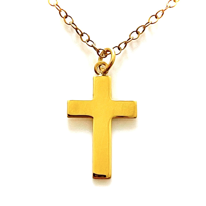 18ct Gold Plated Sterling Silver Medium Cross Pendant Necklace | Elegant Faith & Sophistication | 23mm x 13mm