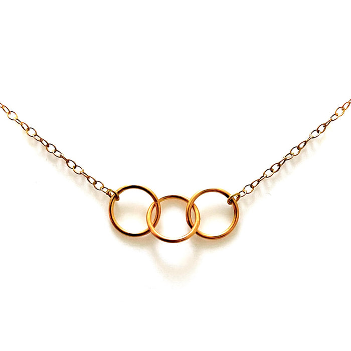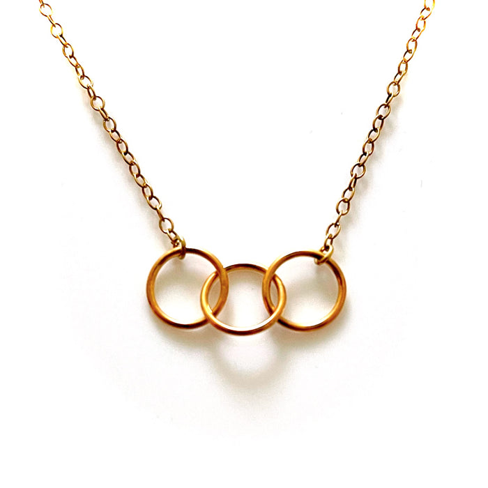 At its center, you'll find a pendant meticulously crafted from three perfectly interlocked 10mm diameter x 1mm thick rings, forming an elegant Love Knot design in the shape of the eternal symbol. Each ring symbolizes the unbreakable bonds we share with loved ones and the world around us.