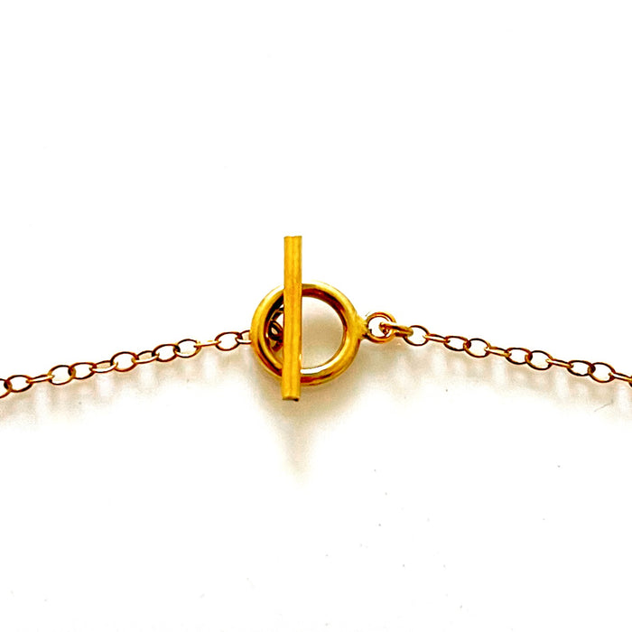 The pendant is elegantly secured by a 9mm ring & 14mm bar toggle clasp, fusing functionality with style. The toggle clasp adds a touch of uniqueness to this meaningful piece.
