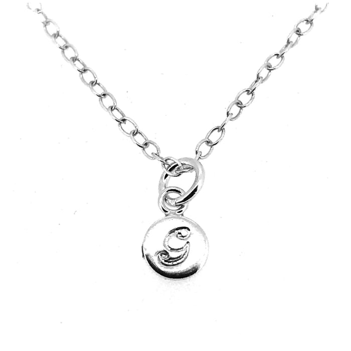 • 6mm disc pendant engraved with Initial G in an elegant ballroom font
