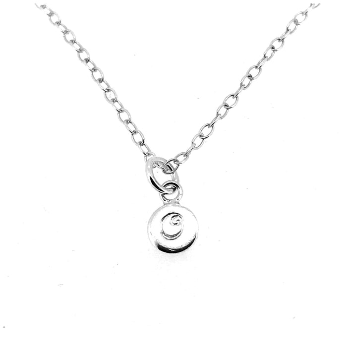 • 6mm disc pendant engraved with Initial O in an elegant ballroom font