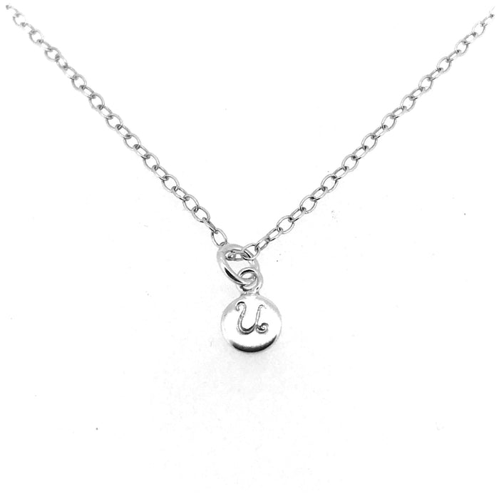 Personalised Initial U Necklace - 6mm Sterling Silver Disc Pendant with Elegant Ballroom Font