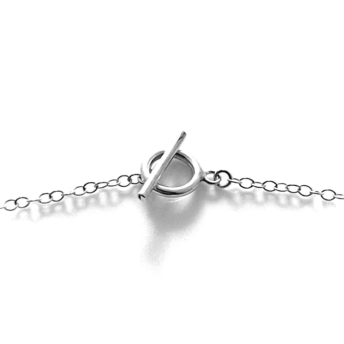 The pendant is gracefully suspended from a 1mm wide cable chain, creating a harmonious balance between the pendant's delicacy and the chain's durability. What sets this pendant apart is its thoughtful design featuring our signature 9mm ring and 14mm bar toggle clasp. This unique addition not only enhances its style but also adds functionality, allowing for easy adjustment of the chain's length.
