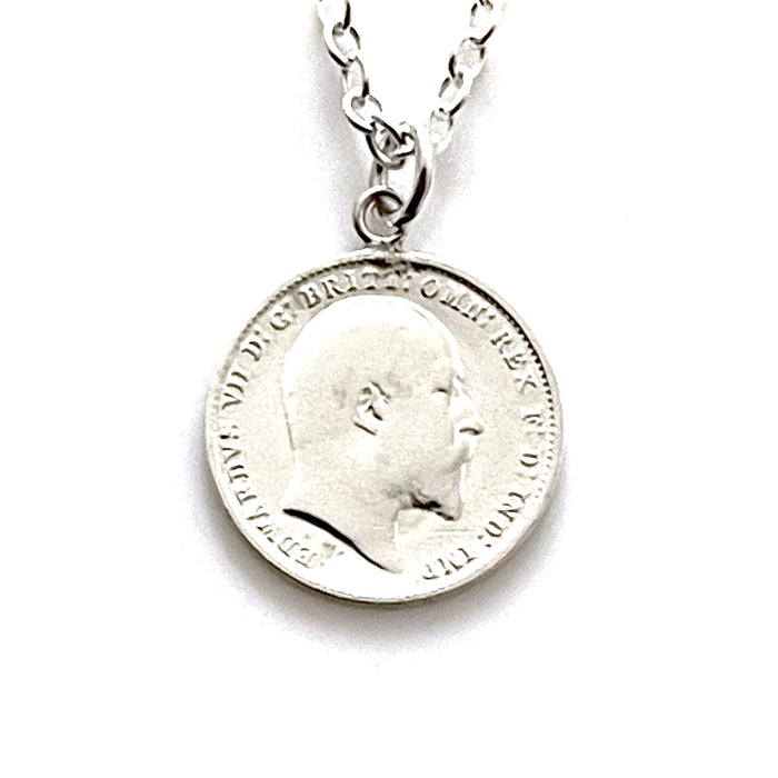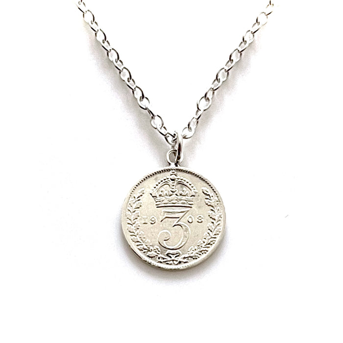 Antique 1908 British Silver Three Pence Coin Necklace - Vintage Sterling Silver Pendant | Roberts & Co