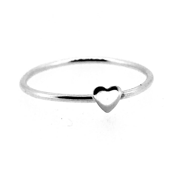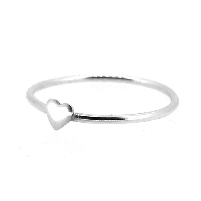 Heart Ring Sterling Silver Skinny Round Stacking Band | Delicate Design