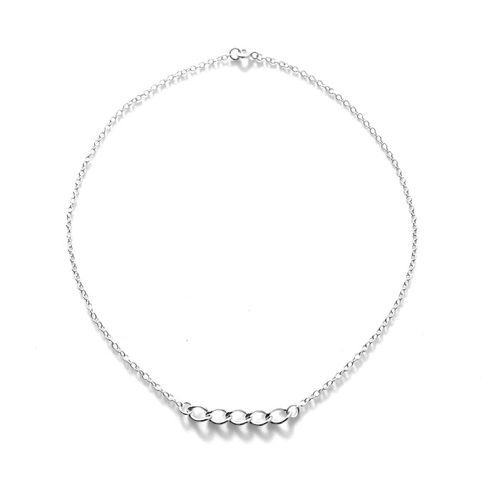 Introducing the Sterling Silver Mixed Chain Necklace with Curb Chain Pendant from Roberts & Co. Our skilled artisans have seamlessly merged the elegance of a 2mm wide oval link chain with the audacious charm of a 5mm curb chain pendant. Each link is meticulously crafted, ensuring durability while maintaining a lightweight feel for daily wear. This necklace is more than just a jewelry piece – it's a statement of sophistication and modern design. Whether you're dressing up for an event or adding a touch of elegance to your daily ensemble, our mixed chain necklace promises to be a conversation starter. Features: